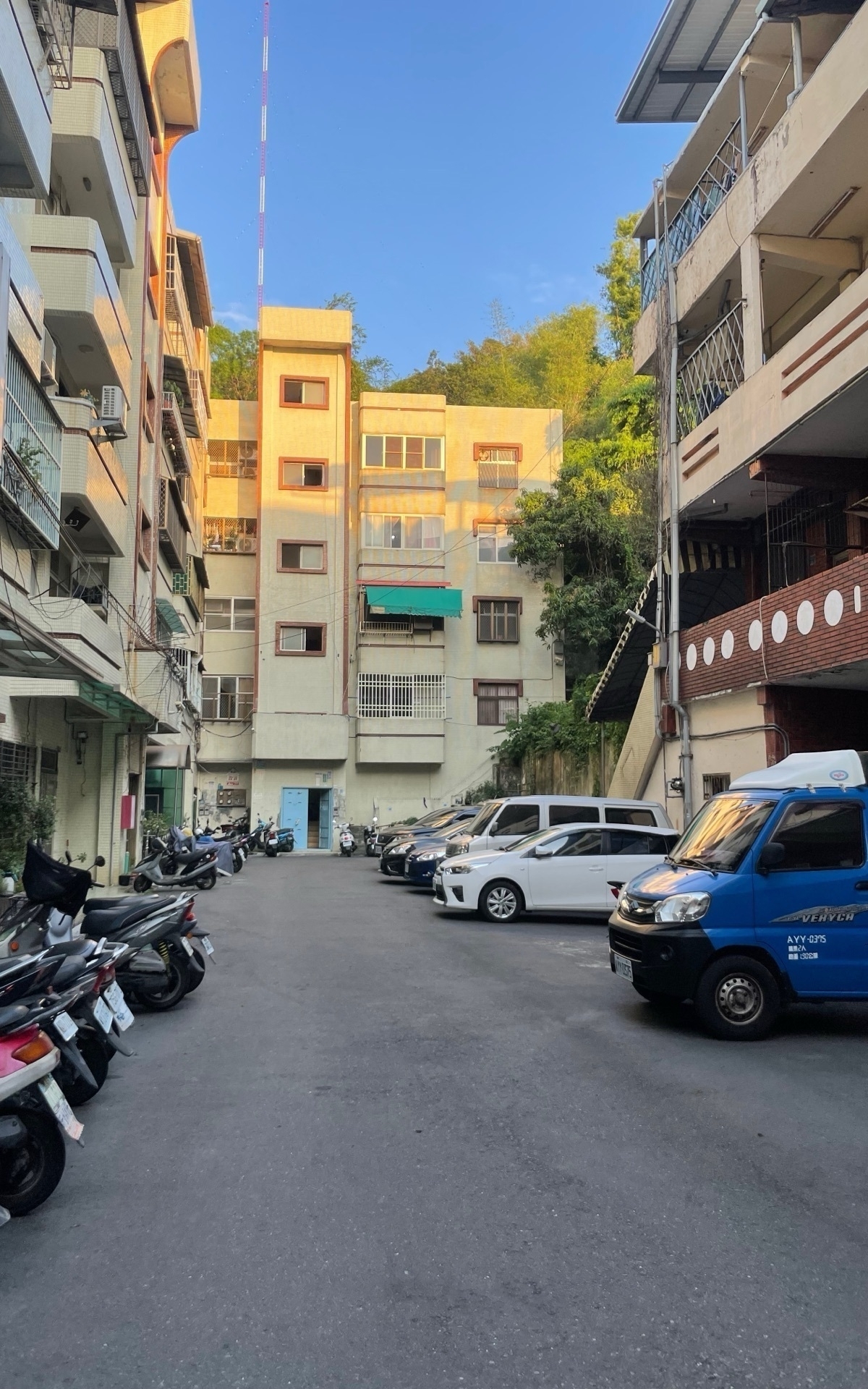 陪朋友去看租屋處,屋齡平均 40 年的老社區,背後有一條小徑可以通往八卦山的文學步道。